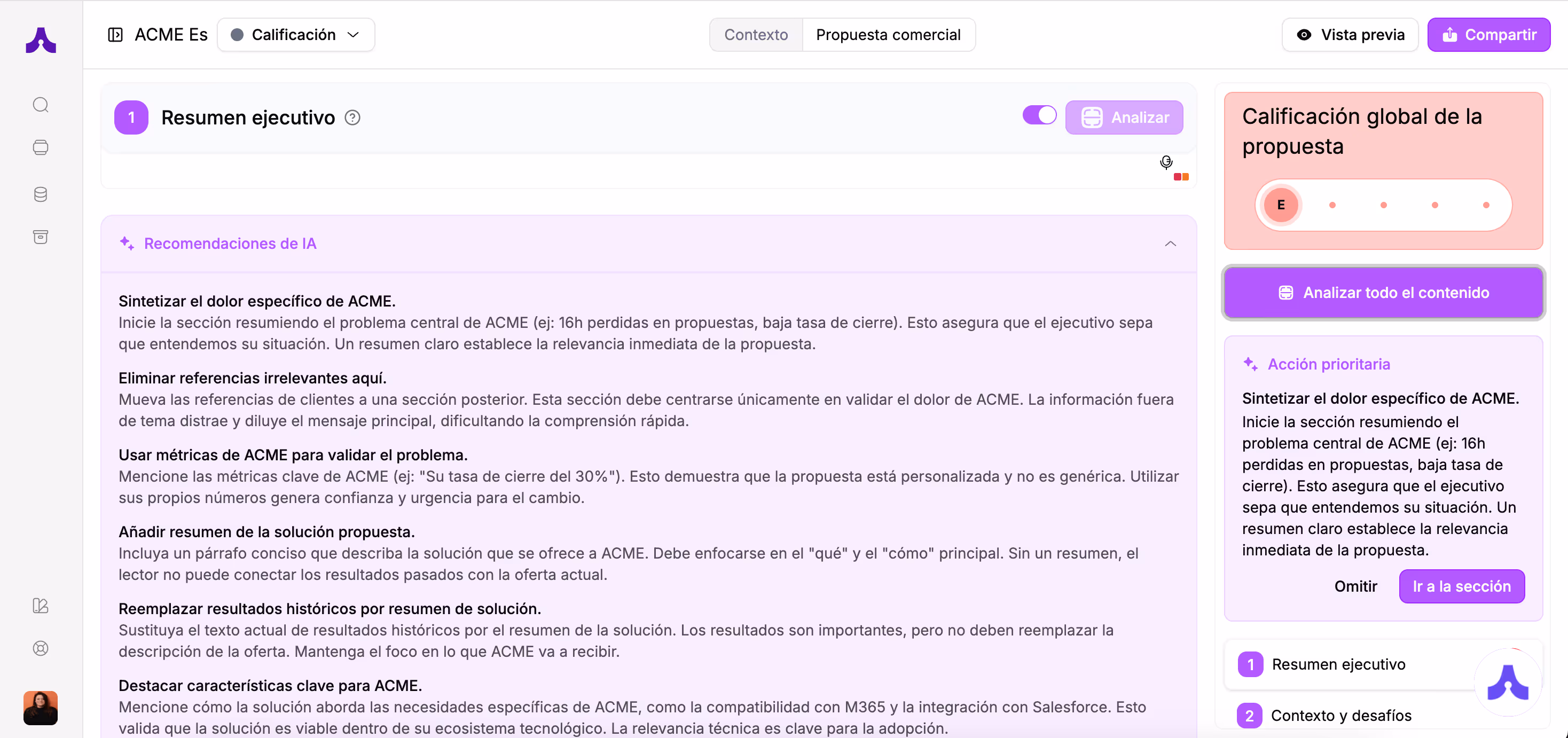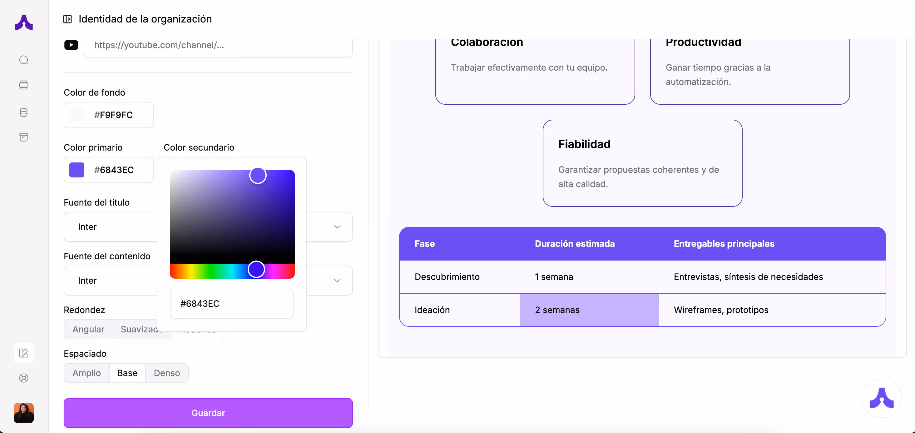 Usando la configuración de identidad de marca, crea propuestas que reflejen tu imagen.