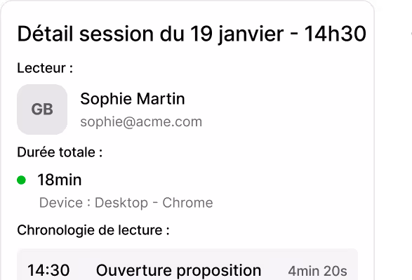 Plus besoin d'attendre des semaines pour savoir ce que pense votre prospect. Cuevr intègre des outils de feedback rapide directement dans vos propositions commerciales.